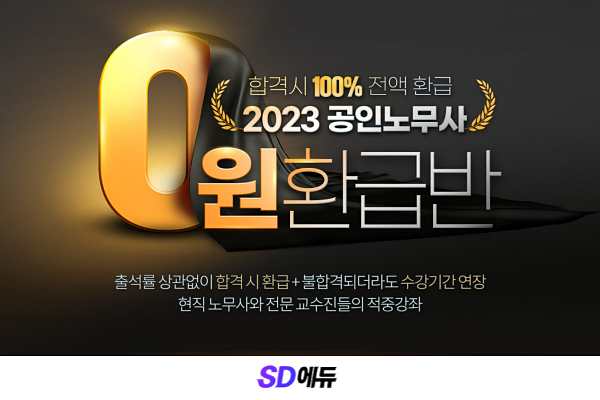 공무원 · 자격증 온라인 강의 브랜드 SD에듀에서 환급 및 수강 기간 연장 혜택을 담은 ‘2022+2023 공인노무사 0원 환급반’을 운영 중이라고 30일 밝혔다.