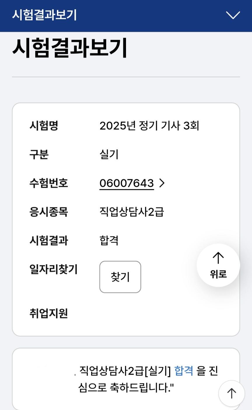 오랜 회사생활을 과감히 그만두고 나의 적성에 맞을 직업을 선택하고자 4개월 넘게 직업상담사 2급을 준비하였습니다.