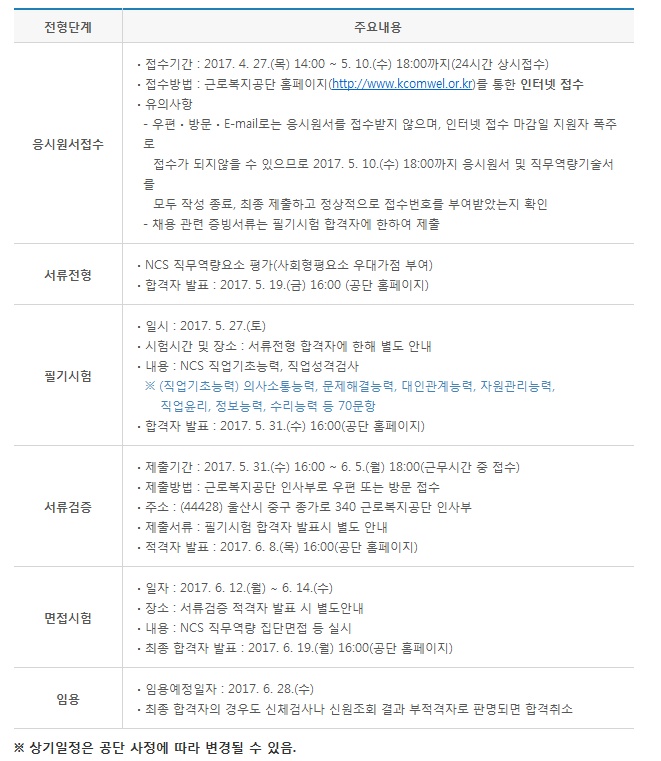[근로복지공단] 2017년도 근로복지공단 신입직원 채용공고
