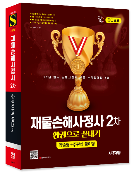 2026 시대에듀 재물손해사정사 2차 한권으로 끝내기 도서는 재물손해사정사 2차 시험에 대비할 수 있도록 구성한 도서입니다. 과목별로 기출 및 최신 개정사항을 반영한 개념설명과 예제문제 및 사례문제를 통해 반복학습이 가능하도록 하였습니다. 중요내용 및 심화내용은 심화TIP을 통해 학습할 수 있으며, 상세한 해설이 첨부된 12개년의 기출문제를 통해 출제경향 파악 및 학습방향을 설정할 수 있습니다. 2026 시대에듀 재물손해사정사 2차 한권으로 끝내기 도서를 통해 합격의 기쁨을 누리시길 바랍니다.