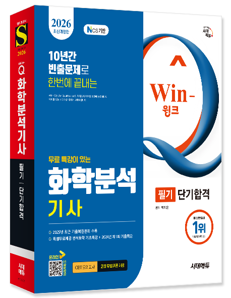 화학분석기사,화학분석,화학,분석,화학의이해와환경안전관리,분석계획수립과분석화학기초,화학물질특성분석,화학물질구조및표면분석,화학의이해,환경안전관리,환경관리,안전관리,분석계획수립,분석계획,분석화학기초,분석화학,화학물질,특성분석,화학물질구조분석,구조분석,화학물질표면분석,표면분석,화학분석기출,윙크,시대고시기획,SD에듀,시대에듀,25년기출,기출복원