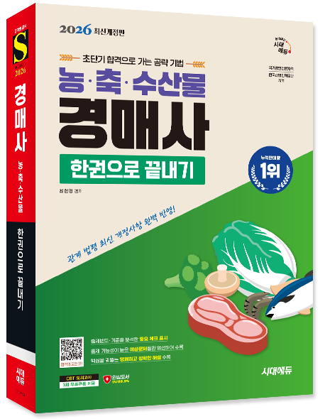 전문직종인 농·축·수산물 경매사 자격시험에 대한 도서가 그동안 발간되지 않아 경매사에 도전하시려는 분들이 많은 어려움을 겪고 있었습니다. 이에 시대고시기획에서 경매사 자격시험 준비에 안성맞춤인 농·축·수산물 경매사 한권으로 끝내기 도서를 출간하였습니다.