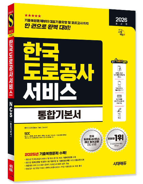 한국도로공사서비스 필기전형 합격을 위해 시대에듀에서는 2026년 채용을 대비하여 『2026 최신판 시대에듀 한국도로공사서비스 통합기본서』를 출간하였다. 2025년 주요 공기업 및 한국도로공사서비스 기출복원문제를 수록하였고, 직업기초능력평가 기출응용문제와 대표기출유형으로 NCS를 철저히 대비할 수 있도록 하였다. 또한 최종점검 모의고사로 실전 감각을 익히고 상세한 해설로 혼자서도 학습이 가능하도록 하였으며, 온라인 모의고사를 무료로 응시할 수 있는 쿠폰을 제공하여 문제 유형에 대한 연습과 함께 자신의 실력을 최종 점검할 수 있도록 하였다.