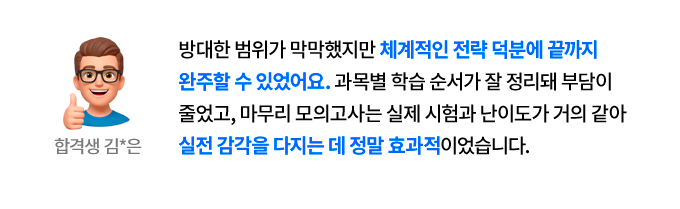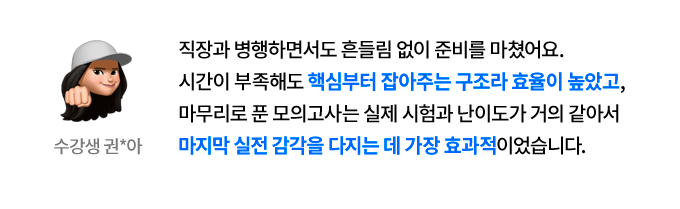 - 모의고사 응시 또는 해설강의 수강을 시작한 이후에는 콘텐츠 특성상 상품 변경 및 환불이 불가합니다.